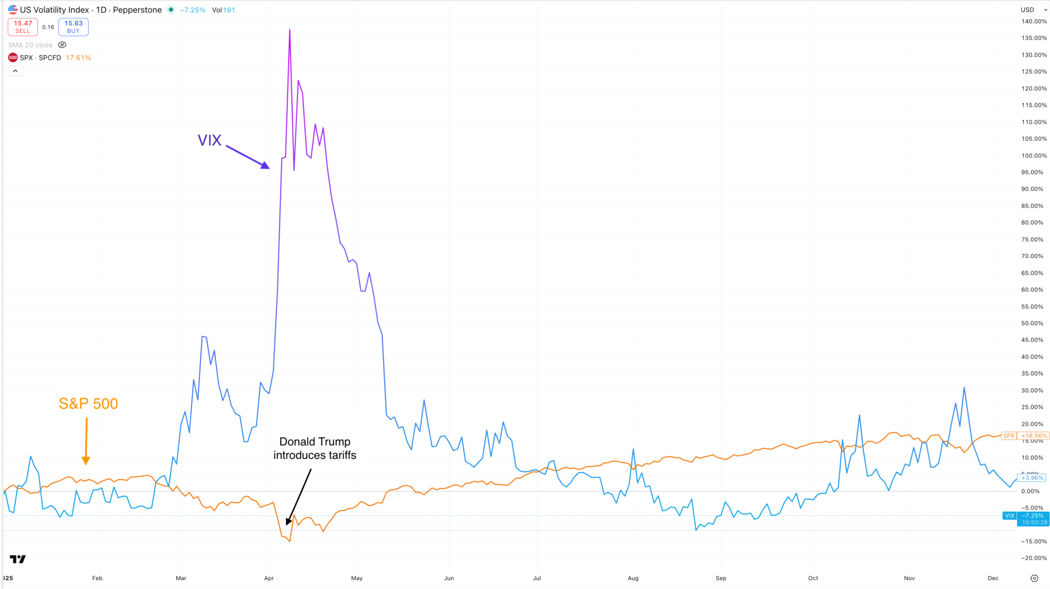 Pepperstone routes orders through Tier-1 banks, ensuring fast and reliable fills even during volatile VIX spikes.